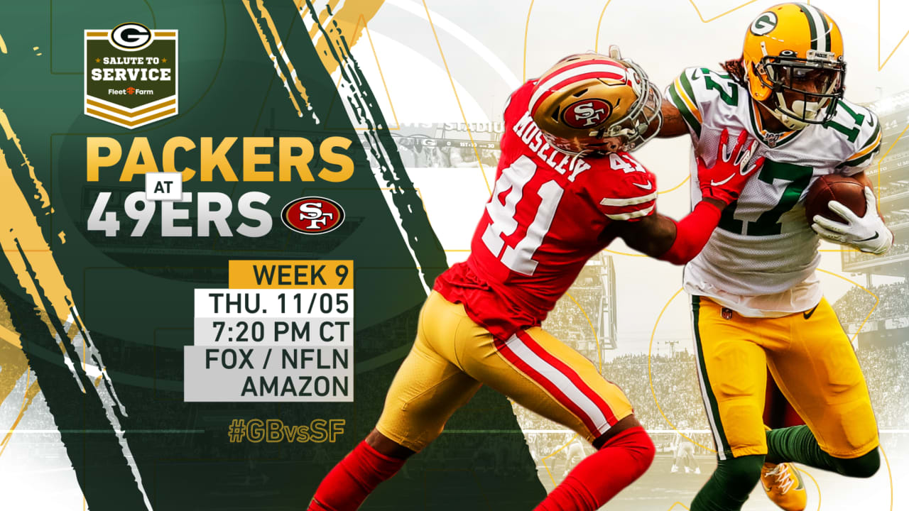 The green bay packers come out of a bitter defeat that raised red flags, but they will try to right the ship on thursday night football against the san francisco 49ers. San francisco 49ers head coach kyle shanahan walks onto the. Shop 49ers salute to service gear! I still thought we could have a (competitive) game. The official source of the latest packers headlines, news, videos, photos, tickets, rosters, stats, schedule, and gameday information